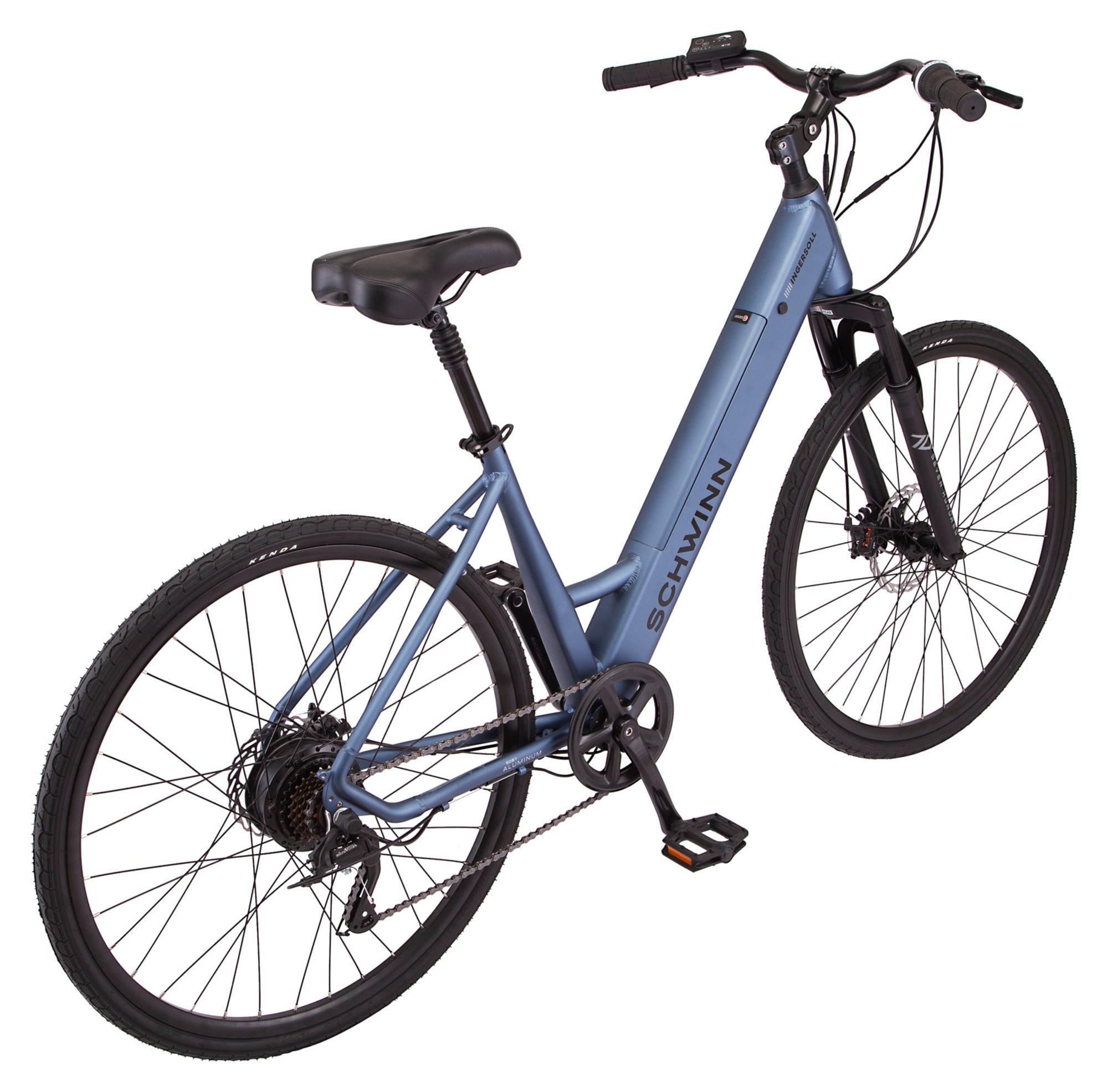 Schwinn 700c Wanderlust Unisex Electric Hybrid Bike Matte Blue 250w Motor Step Thru Ebike For Adults Walmart Com